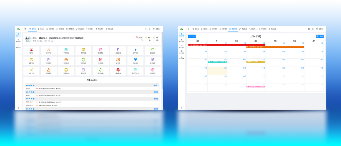 平台以用户需求为导向,全面覆盖教师培训的各个环节,为学校教师提供优质的培训体验,功能涵盖班级管理、人员管理、课程管理、楼宇导视、设备管理、门禁管理、车辆管理、证书管理、审批管理等各方面,可以通过在线系统处理业务,满足学校运营需求,并提高资源的合理利用。