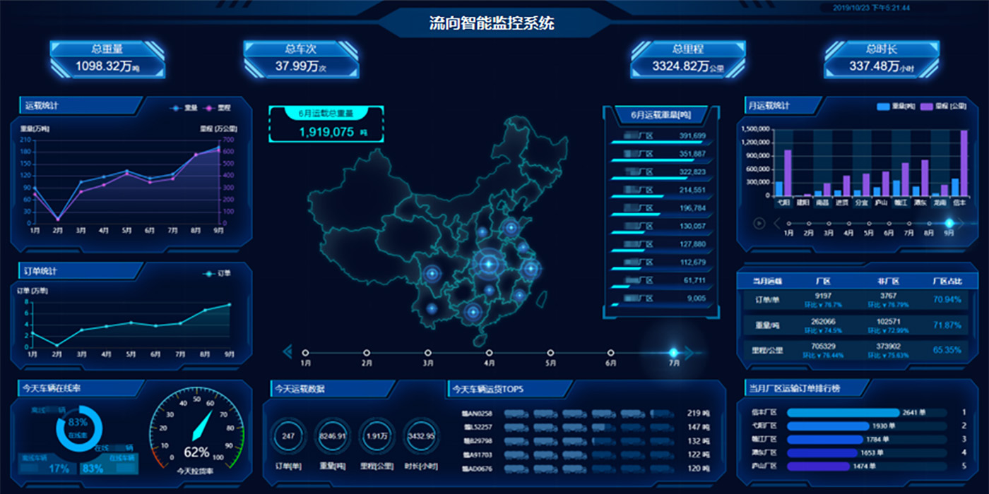 监控大屏:监控大屏可以实时展示车辆在途情况,中心仓库可实时查看订单状态、追踪货物,提高配送效率和准确度。
